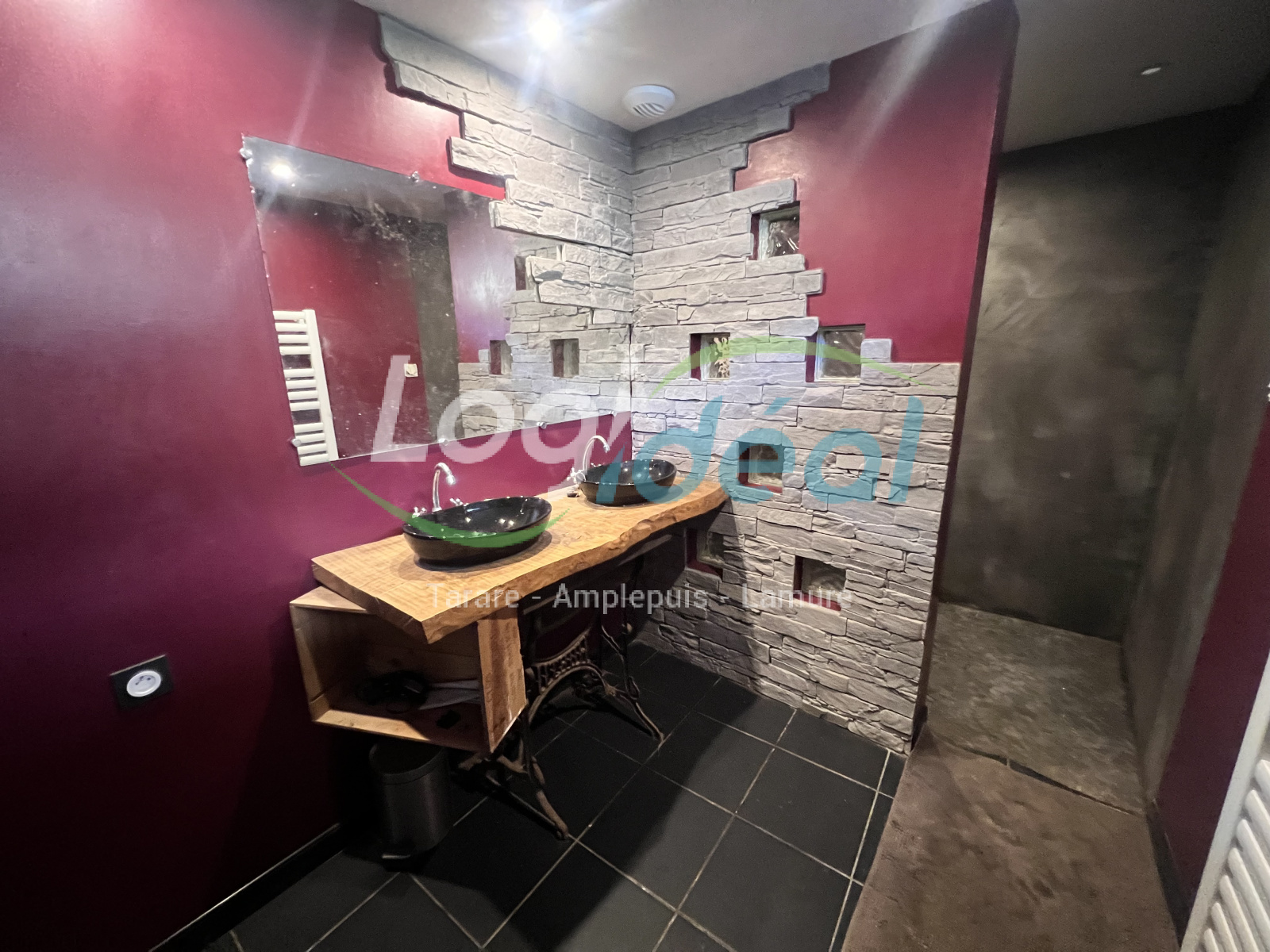 Carrelage, douche italienne, double vasque